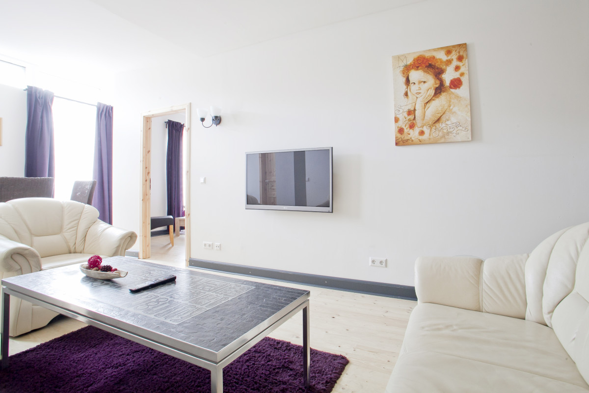 Helles und besonders großes Wohnzimmer mit Kabel-TV, großer Flachbildschirm,